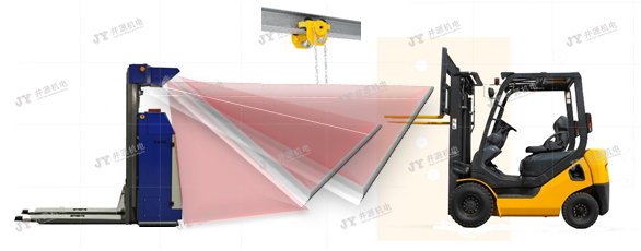 ◆Front 3D visual inspection: It can detect artificial forklift arms, cranes, etc. above the front of the AGV.