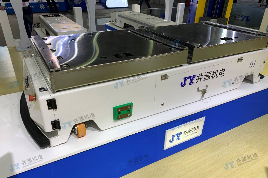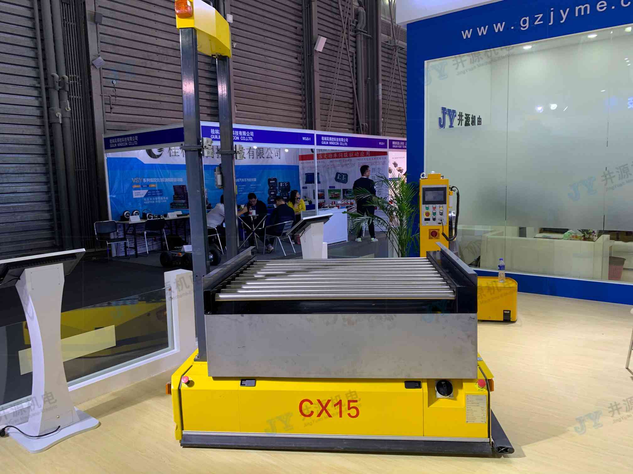 展會現場,井源機電一改傳統搭建風格,采用精裝明亮色彩,以全新形象出現在展會現場。同時,現場展示有多款井源經典設備,分別是:激光叉車AGV FX15、激光承載AGV CX15、裝配型AGV TX15、雙向輥道AGV、潛伏牽引式AGV。致敬亞洲物流展20周年。厚德載物,經典傳承。每款產品配套有專業的電子解說觸屏設備,觀眾可在現場一睹實體產品外,也能針對性的了解產品的具體特色和運用案例。